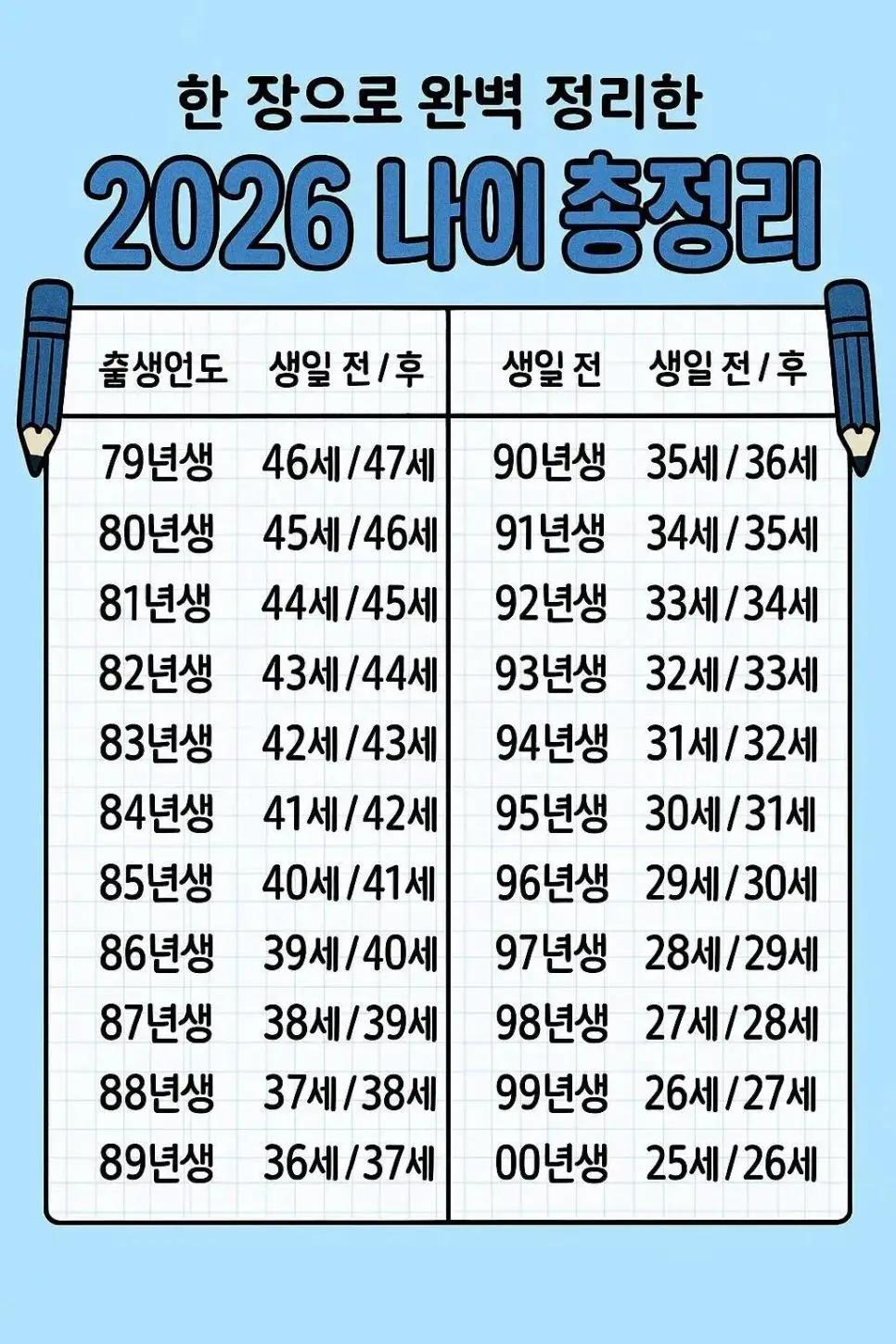 한 장으로 완벽 정리한 2026년 나이 총 정리(+어르신용)