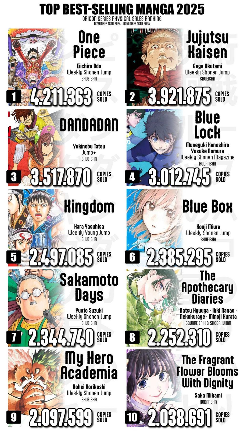 2025년 일본 만화 & 라이트 노벨 판매량 TOP 10