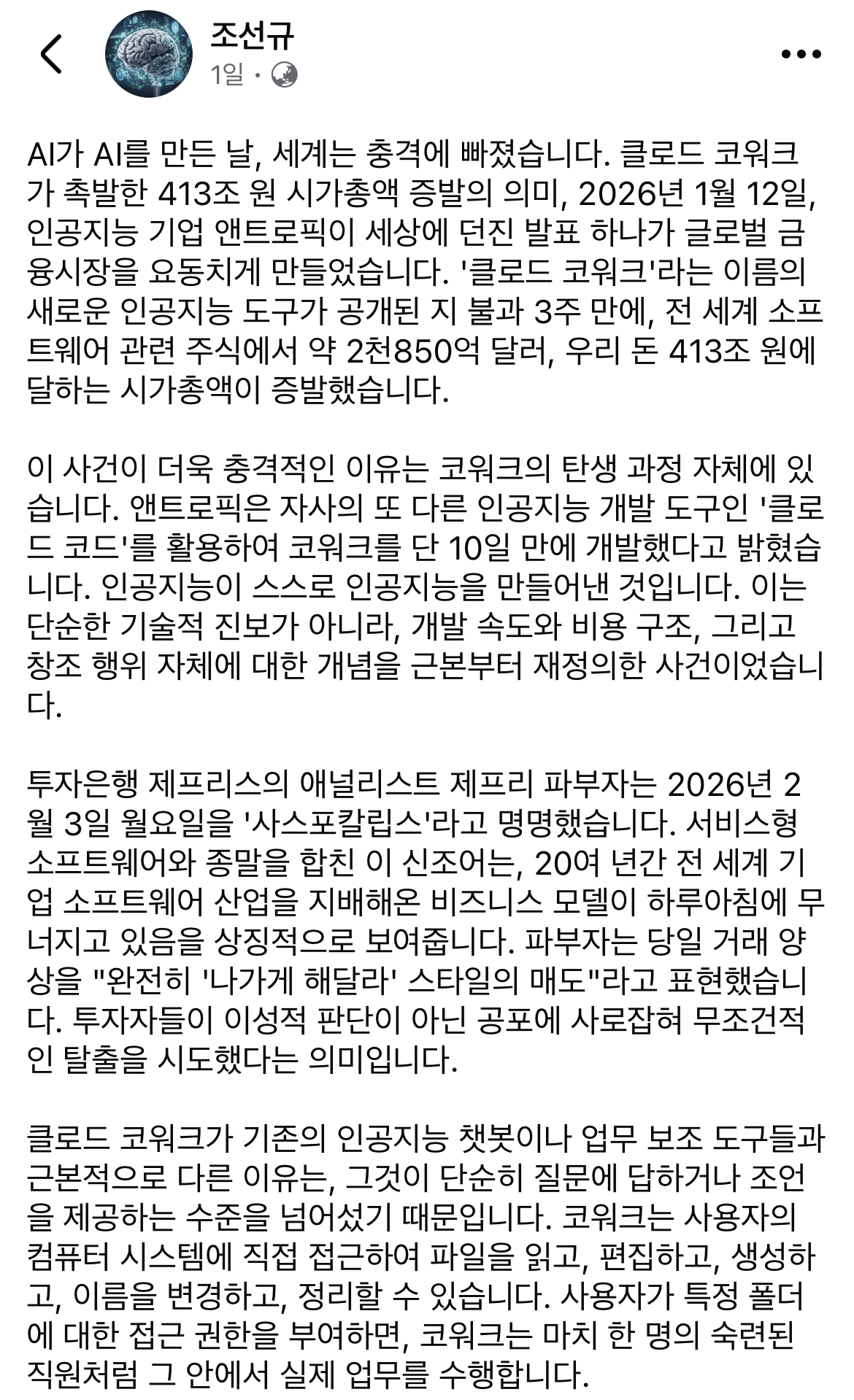 AI가 AI를 만든 날의 충격 작성자 정보 최고관리자 작성일 02.07 16:23 컨텐츠 정보 2 조회 0 댓글 0 추천 0 비추천 목록 https://www.facebook.com/share/181KvrtYNc/?mibextid=wwXIfr 0 추천 추천 비추천 0 비추천 댓글 로그인한 회원만 댓글 등록이 가능합니다. 이전 다음 목록