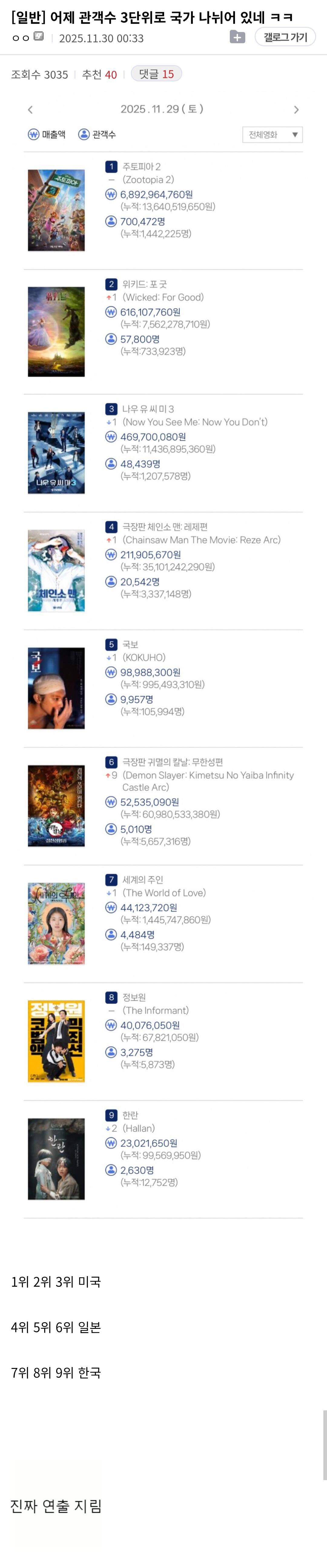 어제 한국 극장가에서 벌어진 대단한 연출 작성자 정보 최고관리자 작성일 2025.12.01 23:44 컨텐츠 정보 24 조회 0 댓글 0 추천 0 비추천 목록 0 추천 추천 비추천 0 비추천 댓글 로그인한 회원만 댓글 등록이 가능합니다. 이전 다음 목록