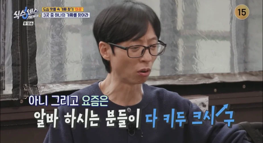 유재석: 요즘은 알바 하시는 분들이 다 키두 크시구