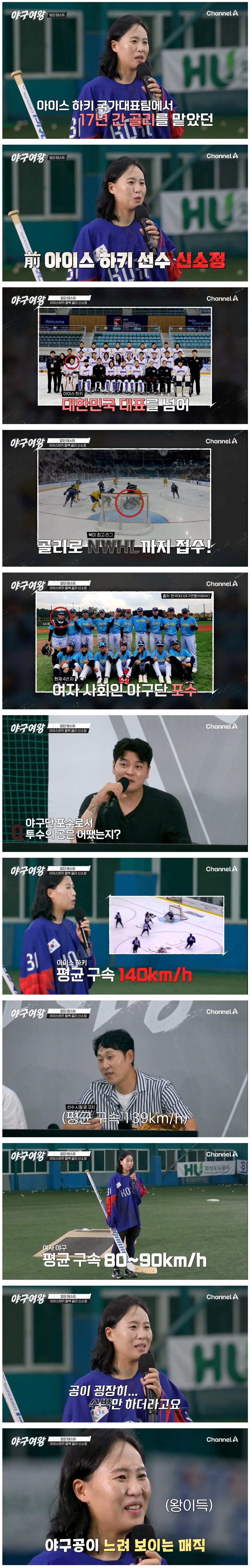 야구 포수에 도전한 여자 아이스하키 국대 선출의 실력 ㄷㄷ