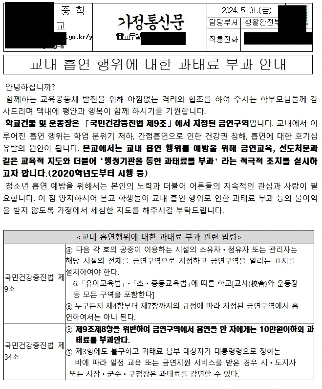 요즘 학교에서 보내는 흡연 관련 가정통신문 작성자 정보 최고관리자 작성일 2025.11.28 15:44 컨텐츠 정보 26 조회 0 댓글 0 추천 0 비추천 목록 0 추천 추천 비추천 0 비추천 댓글 로그인한 회원만 댓글 등록이 가능합니다. 이전 다음 목록