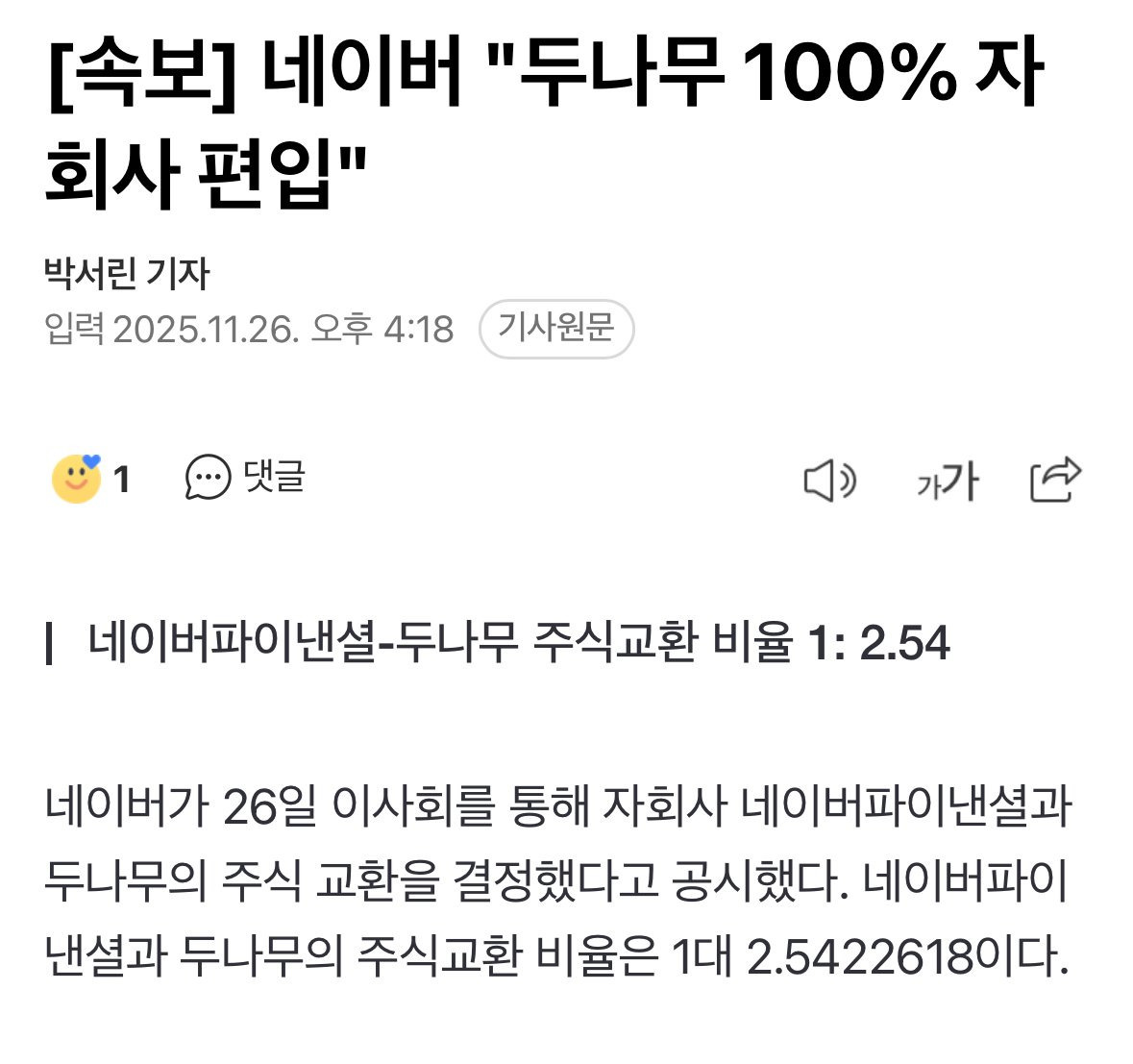 네이버 "두나무 100% 자회사 편입"