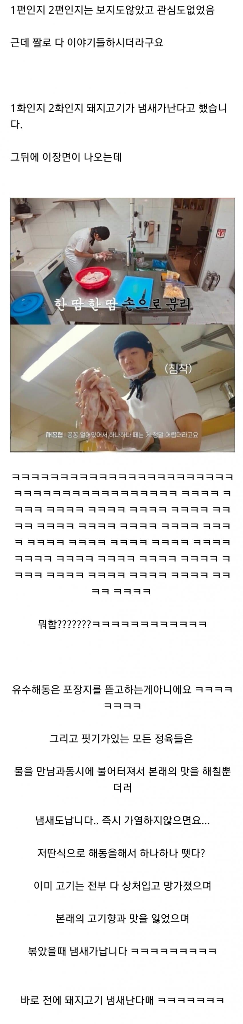 남극의 셰프 해동 논란 작성자 정보 최고관리자 작성일 2025.11.26 18:36 컨텐츠 정보 26 조회 0 댓글 0 추천 0 비추천 목록 그전 장면에서 제육 누린내 난다고 했으면서 정작 본인들은 왜 냄새나게 해동시키냐고 의문이라고 현직종사자들이 뭐라함 0 추천 추천 비추천 0 비추천 댓글 로그인한 회원만 댓글 등록이 가능합니다. 이전 다음 목록