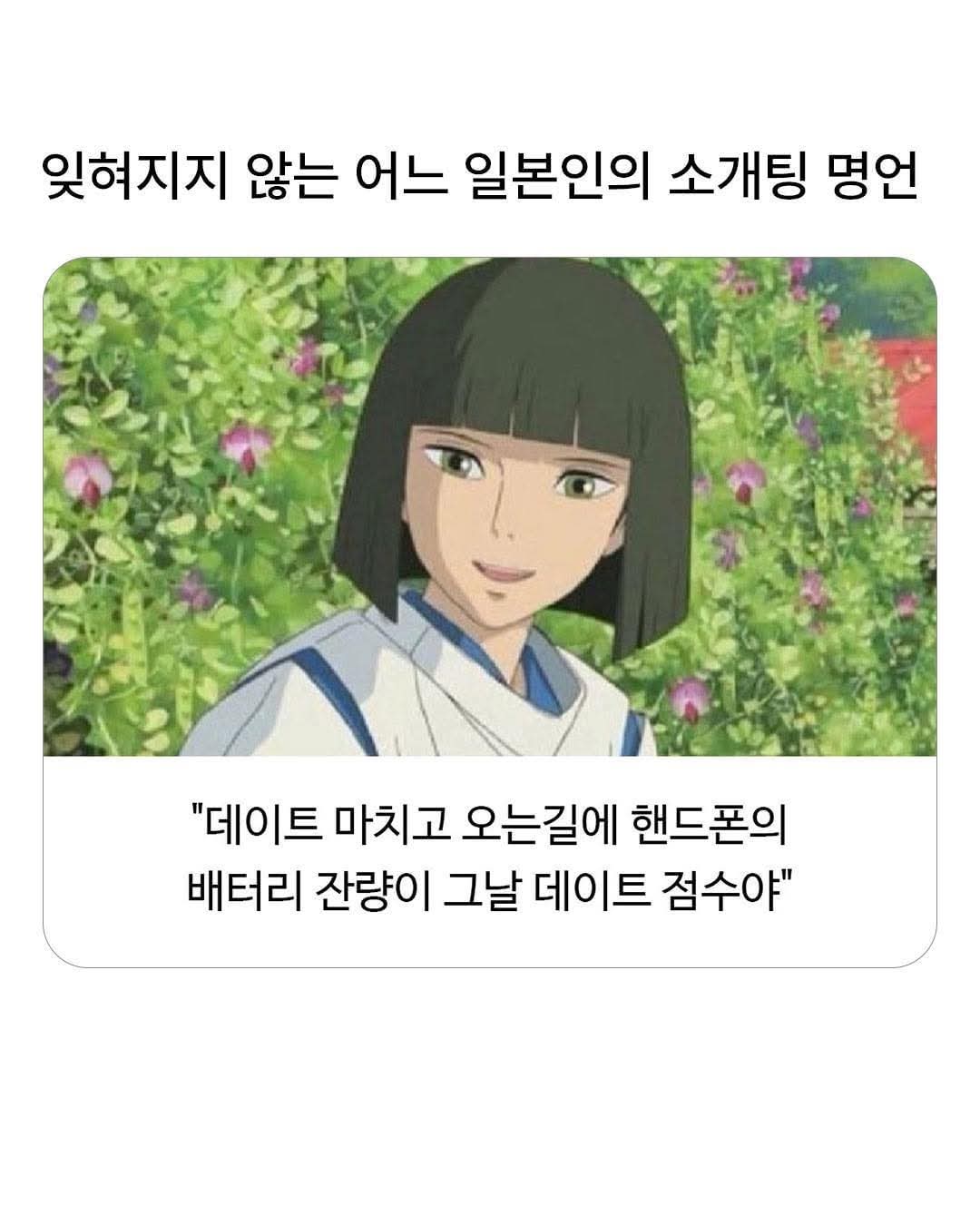 어느 일본인의 소개팅 명언 작성자 정보 최고관리자 작성일 10.09 19:18 컨텐츠 정보 25 조회 0 댓글 0 추천 0 비추천 목록 0 추천 추천 비추천 0 비추천 댓글 로그인한 회원만 댓글 등록이 가능합니다. 이전 다음 목록