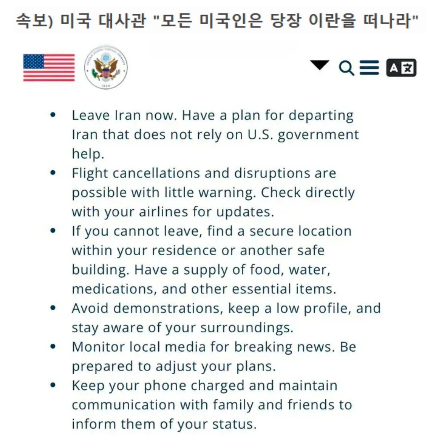 미국, 이란 내 미국인 대피령 작성자 정보 최고관리자 작성일 02.06 16:12 컨텐츠 정보 3 조회 0 댓글 0 추천 0 비추천 목록 https://ir.usembassy.gov/security-alert-land-border-crossings-february-5-2026/ 0 추천 추천 비추천 0 비추천 댓글 로그인한 회원만 댓글 등록이 가능합니다. 이전 다음 목록