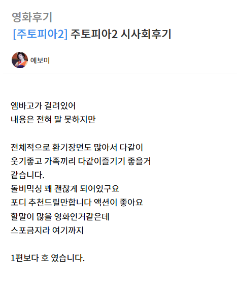 주토피아2 시사회후기 작성자 정보 최고관리자 작성일 2025.11.25 10:42 컨텐츠 정보 29 조회 0 댓글 0 추천 0 비추천 목록 0 추천 추천 비추천 0 비추천 댓글 로그인한 회원만 댓글 등록이 가능합니다. 이전 다음 목록