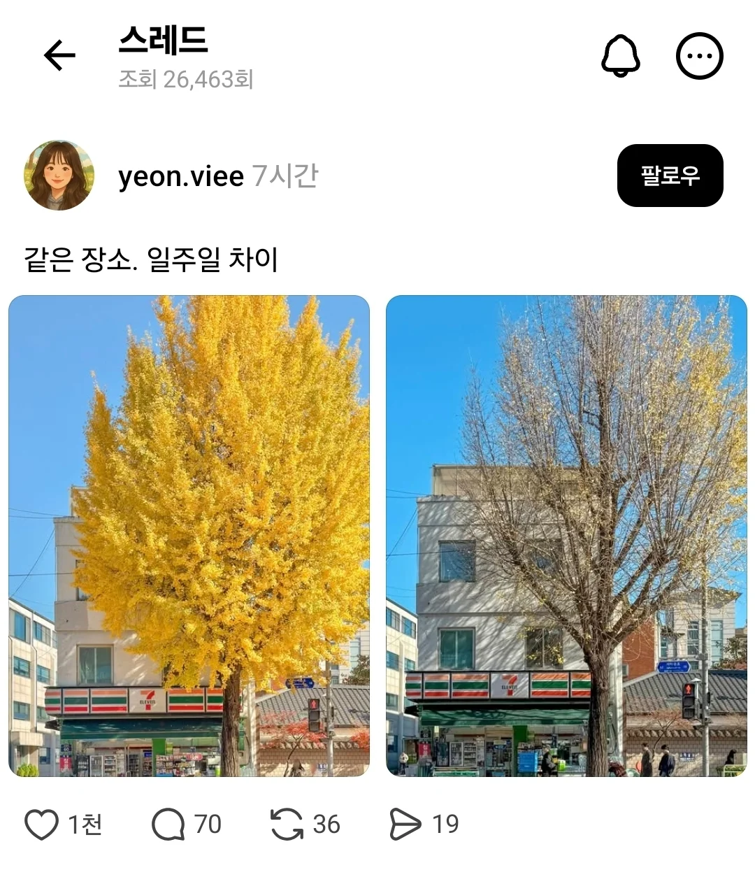 같은 장소 일주일 차이 작성자 정보 최고관리자 작성일 2025.11.23 22:44 컨텐츠 정보 22 조회 0 댓글 0 추천 0 비추천 목록 0 추천 추천 비추천 0 비추천 댓글 로그인한 회원만 댓글 등록이 가능합니다. 이전 다음 목록