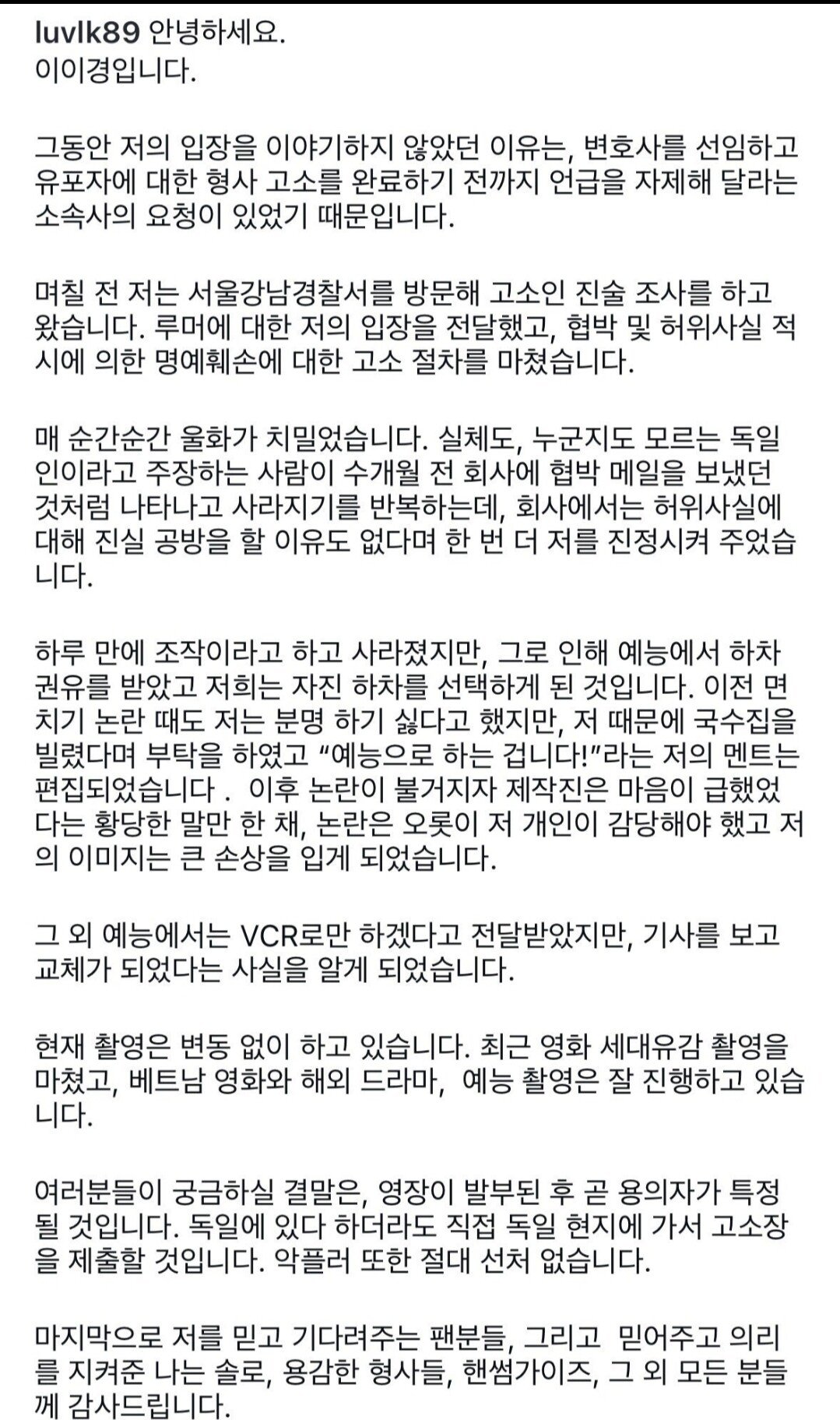 개빡친 이이경 인스타 입장문 작성자 정보 최고관리자 작성일 2025.11.22 13:46 컨텐츠 정보 27 조회 0 댓글 0 추천 0 비추천 목록 놀면뭐하니 제작진 이이경 관련 공식입장 0 추천 추천 비추천 0 비추천 댓글 로그인한 회원만 댓글 등록이 가능합니다. 이전 다음 목록