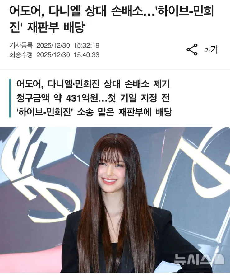 어도어, 다니엘에게 손배소 시작 작성자 정보 최고관리자 작성일 2025.12.30 19:34 컨텐츠 정보 7 조회 0 댓글 0 추천 0 비추천 목록 차근차근 할일 하고 있군요. 과연 뉴진스 사태의 끝은 어떻게 될지 궁금해집니다. 0 추천 추천 비추천 0 비추천 댓글 로그인한 회원만 댓글 등록이 가능합니다. 이전 다음 목록