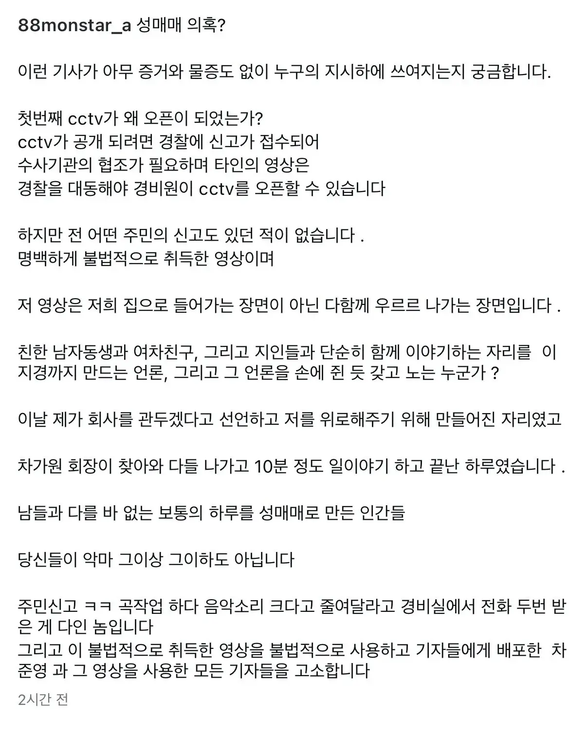 MC몽 성매매 의혹 관련 입장문 작성자 정보 최고관리자 작성일 02.05 19:26 컨텐츠 정보 5 조회 0 댓글 0 추천 0 비추천 목록 아네.. 그렇다고 하네요. 0 추천 추천 비추천 0 비추천 댓글 로그인한 회원만 댓글 등록이 가능합니다. 이전 다음 목록