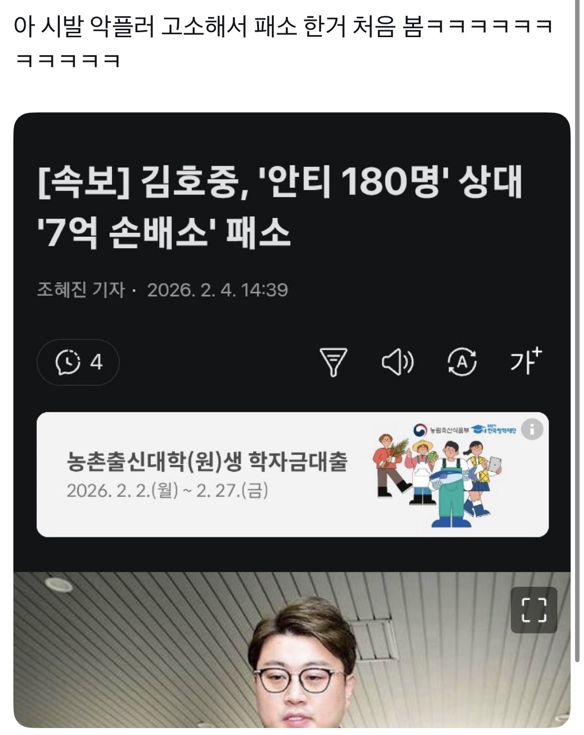 음주운전 김호중 악플러들 고소건 패소함 작성자 정보 최고관리자 작성일 02.05 11:12 컨텐츠 정보 2 조회 0 댓글 0 추천 0 비추천 목록 0 추천 추천 비추천 0 비추천 댓글 로그인한 회원만 댓글 등록이 가능합니다. 이전 다음 목록