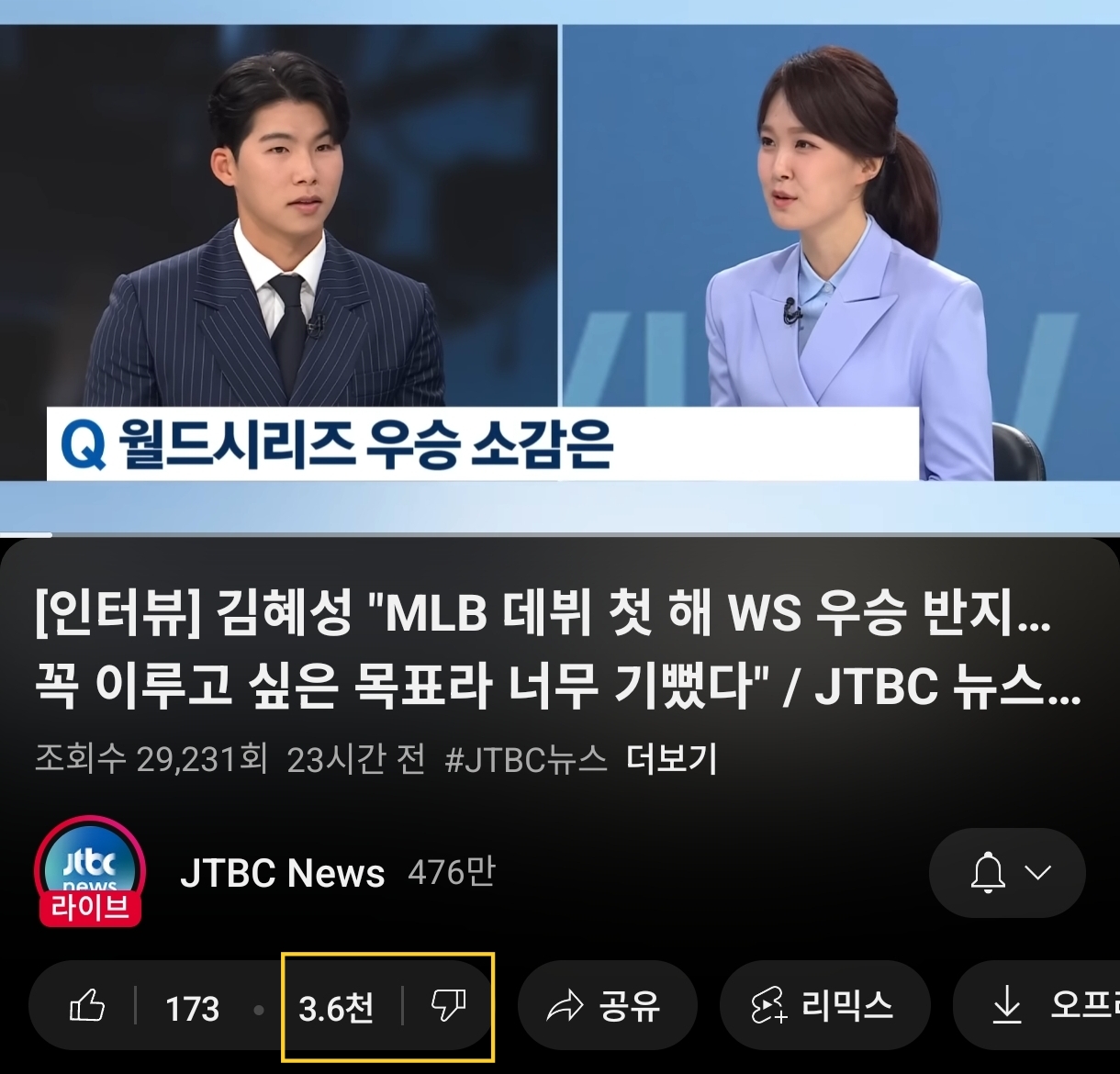 [펌] 어제 JTBC뉴스룸에 김혜성 나왔었군요