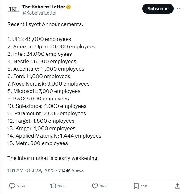 10월 미국 기업들 해고 인원 모음 작성자 정보 최고관리자 작성일 2025.11.09 21:59 컨텐츠 정보 23 조회 0 댓글 0 추천 0 비추천 목록 0 추천 추천 비추천 0 비추천 댓글 로그인한 회원만 댓글 등록이 가능합니다. 이전 다음 목록