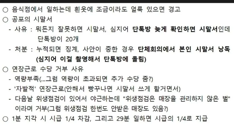 런던 베이글 사내규정 작성자 정보 최고관리자 작성일 2025.11.08 20:46 컨텐츠 정보 45 조회 0 댓글 0 추천 0 비추천 목록 대표자 본인은 폼나게 살면서직원들은 거진 노예처럼 부려먹었네?이야... 왠만한 블랙기업들은 울고갈 삘. 0 추천 추천 비추천 0 비추천 댓글 로그인한 회원만 댓글 등록이 가능합니다. 이전 다음 목록