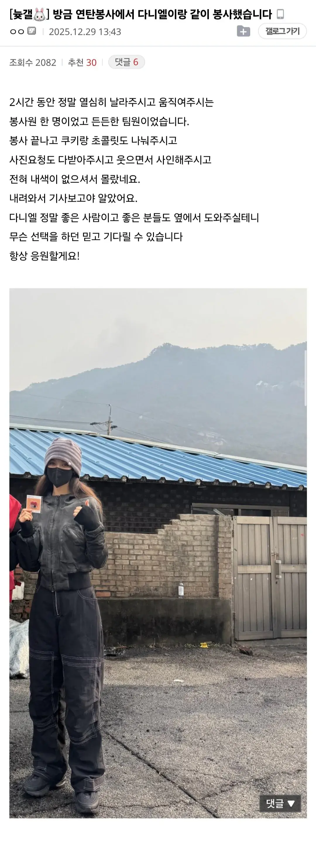 다니엘은 29일 션과 함께 ‘대한민국 온도 1도 올리기’ 연탄 봉사 활동에 참여했다.