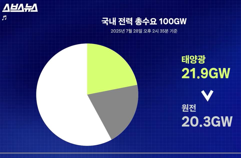 25년 7월 한여름 전기 수요가 넘쳐나는데 태양광이 원전보다 전력 공급을 더 함