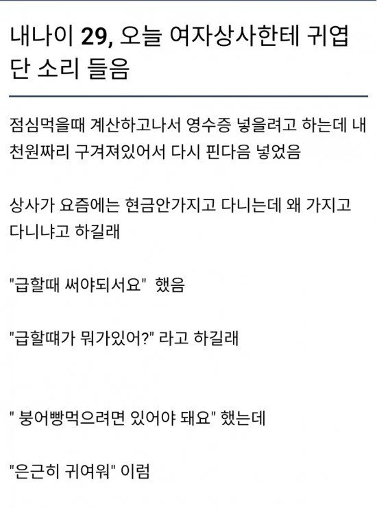 내 나이 29 여상사한테 귀엽다고 들었다 작성자 정보 최고관리자 작성일 2025.11.04 12:51 컨텐츠 정보 41 조회 0 댓글 0 추천 0 비추천 목록 0 추천 추천 비추천 0 비추천 댓글 로그인한 회원만 댓글 등록이 가능합니다. 이전 다음 목록