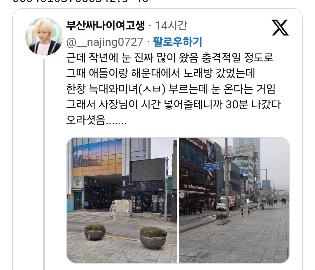 작년 부산 폭설 사진 작성자 정보 최고관리자 작성일 2025.11.03 08:27 컨텐츠 정보 44 조회 0 댓글 0 추천 0 비추천 목록 0 추천 추천 비추천 0 비추천 댓글 로그인한 회원만 댓글 등록이 가능합니다. 이전 다음 목록