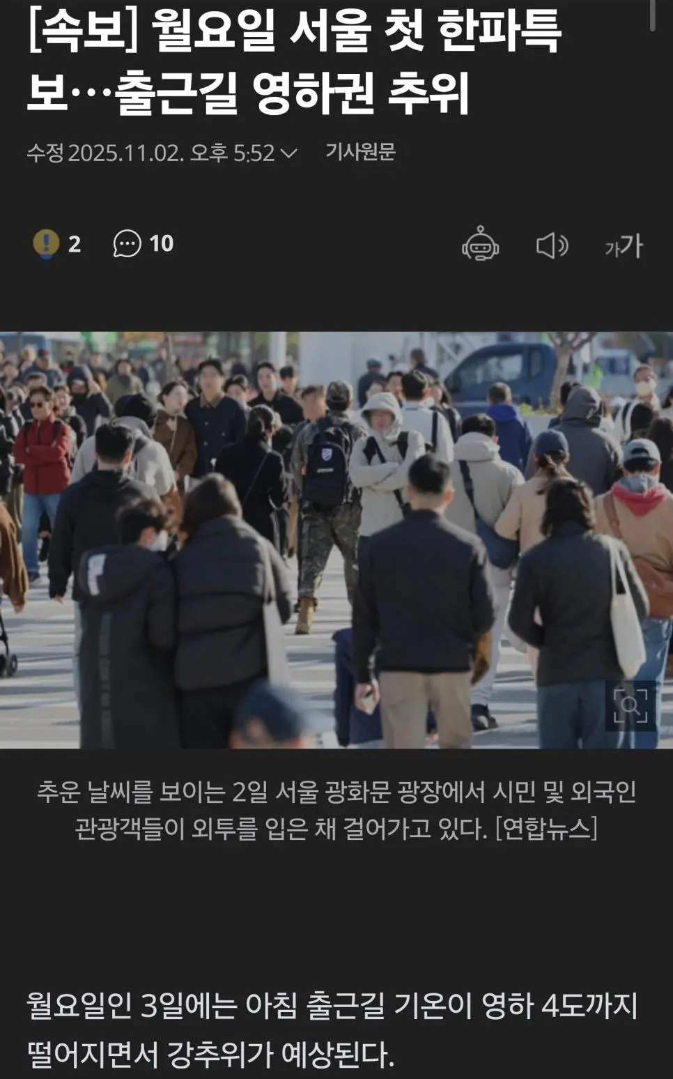 내일부터 한❤️파 작성자 정보 최고관리자 작성일 2025.11.02 20:42 컨텐츠 정보 31 조회 0 댓글 0 추천 0 비추천 목록 https://n.news.naver.com/article/029/0002990980?type=breakingnews&cds=news_my 아주 그냥 중간이 없어....... 0 추천 추천 비추천 0 비추천 댓글 로그인한 회원만 댓글 등록이 가능합니다. 이전 다음 목록