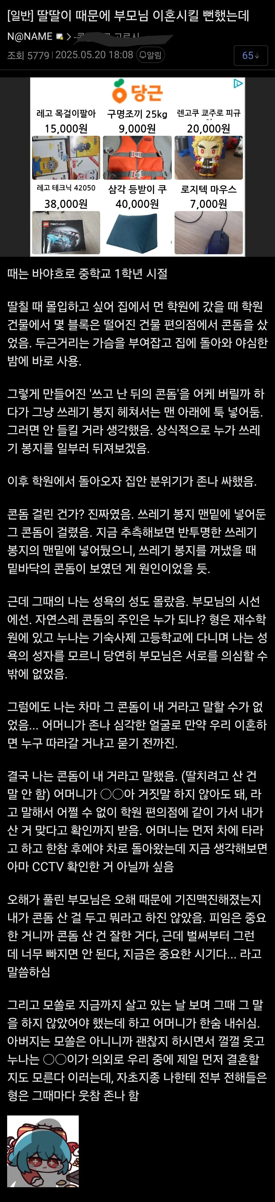딸딸이때문에 부모님 이혼시킬뻔한 썰 작성자 정보 최고관리자 작성일 2025.11.02 00:28 컨텐츠 정보 46 조회 0 댓글 0 추천 0 비추천 목록 0 추천 추천 비추천 0 비추천 댓글 로그인한 회원만 댓글 등록이 가능합니다. 이전 다음 목록