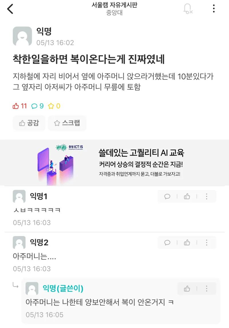 착한 일을 하면 복이 온다는데 진짜였네. 작성자 정보 최고관리자 작성일 2025.11.01 23:00 컨텐츠 정보 54 조회 0 댓글 0 추천 0 비추천 목록 0 추천 추천 비추천 0 비추천 댓글 로그인한 회원만 댓글 등록이 가능합니다. 이전 다음 목록