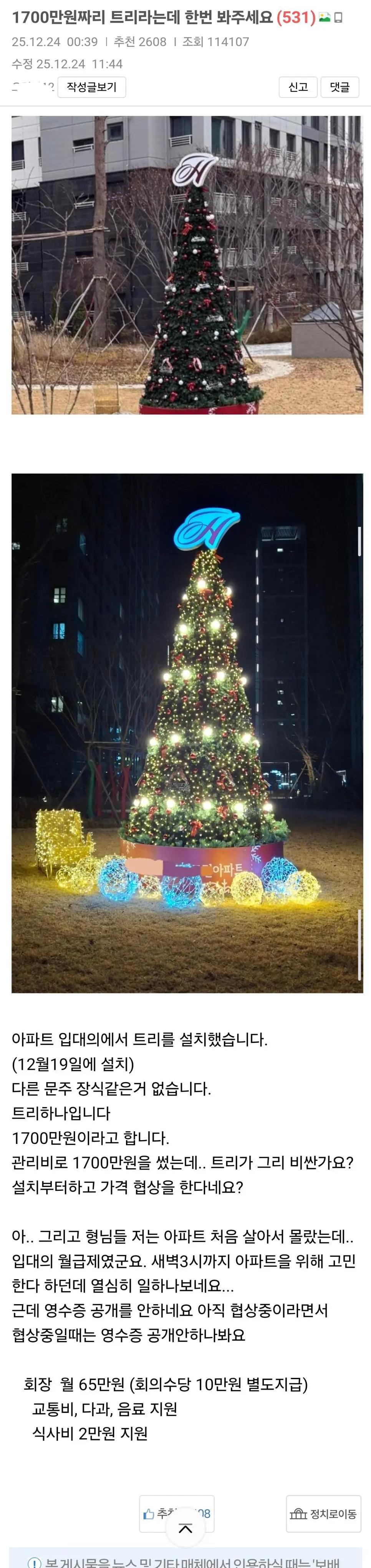 어느 아파트에 설치된 1700만원짜리 크리스마스 트리