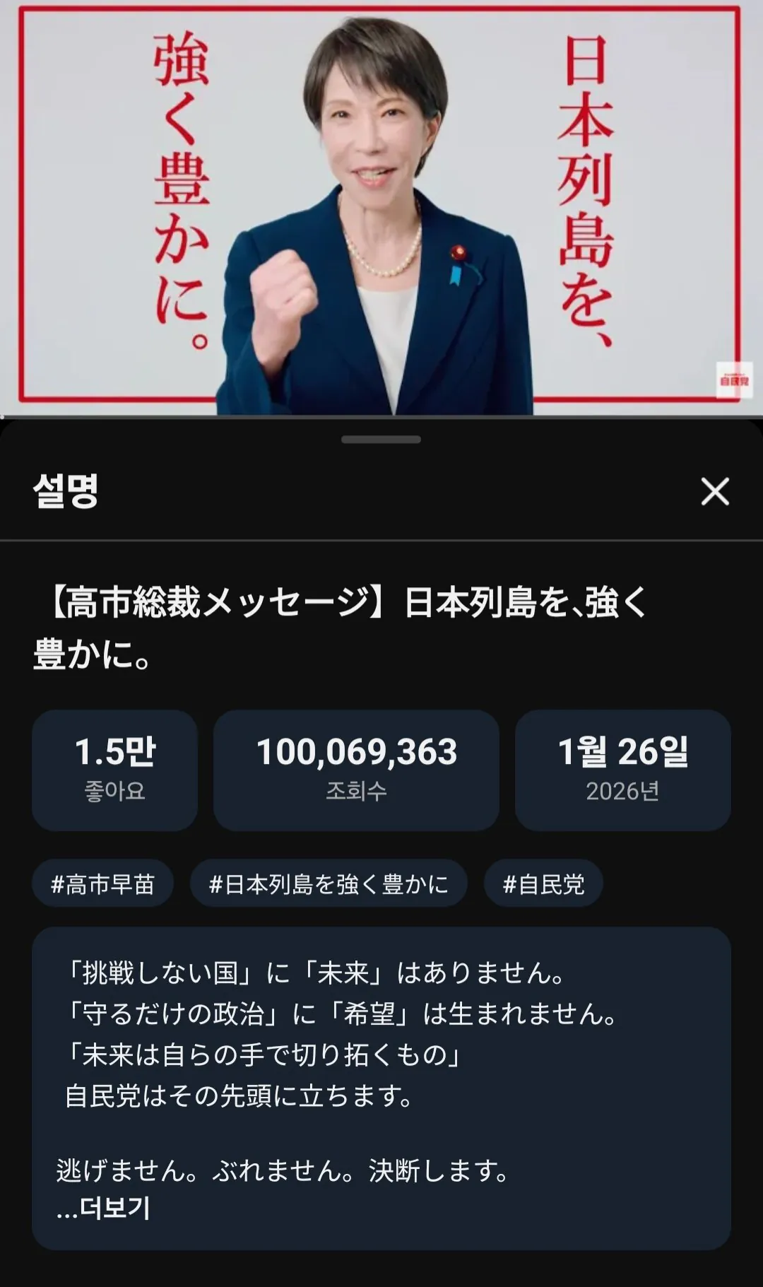 일본 자민당 근황 작성자 정보 최고관리자 작성일 02.04 11:25 컨텐츠 정보 5 조회 0 댓글 0 추천 0 비추천 목록 다카이치 연설 조회수 1억 찍음. 매크로 추정 0 추천 추천 비추천 0 비추천 댓글 로그인한 회원만 댓글 등록이 가능합니다. 이전 다음 목록
