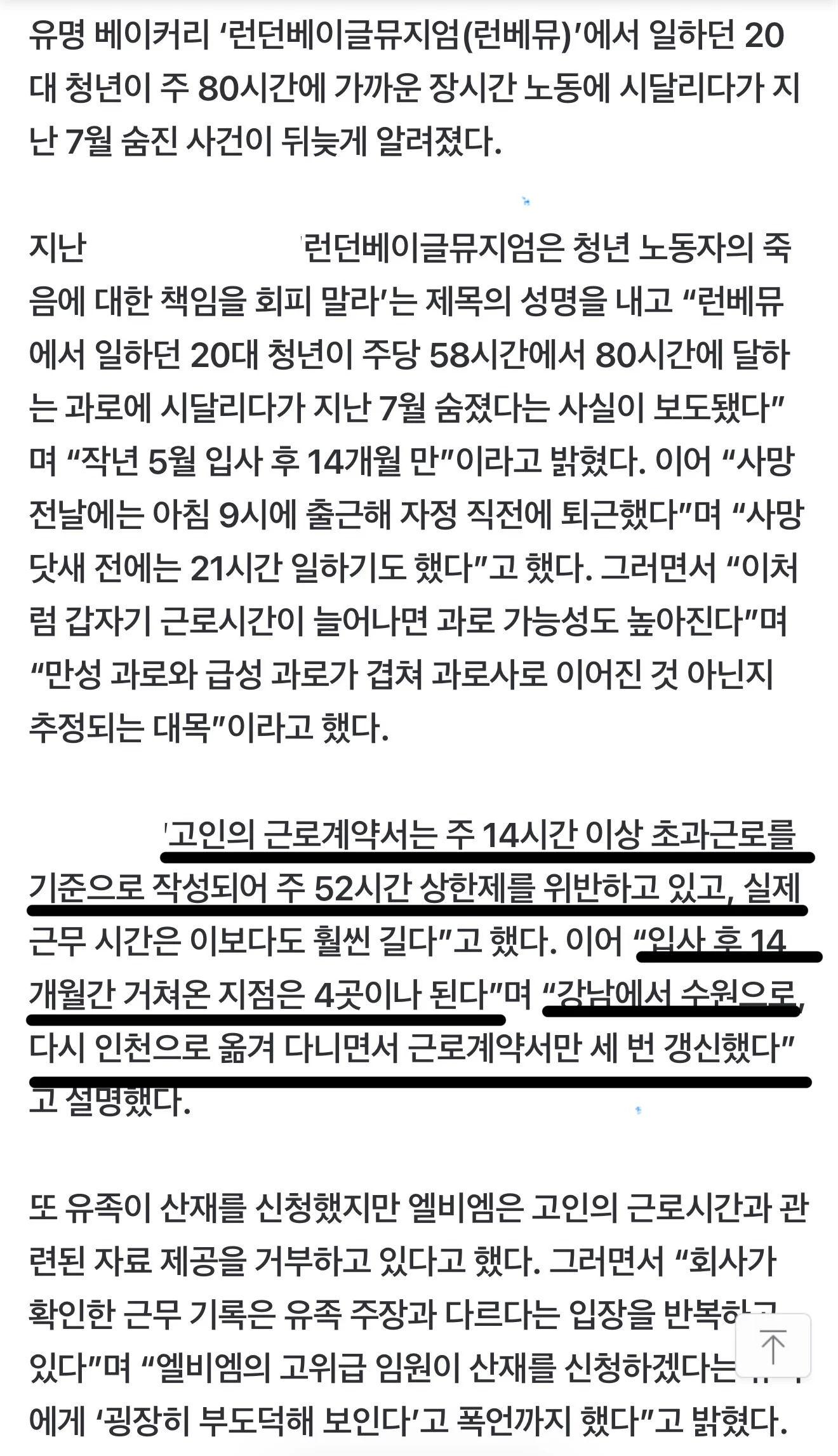 런던베이글뮤지엄 사망자 새로운 사실 작성자 정보 최고관리자 작성일 2025.10.30 00:20 컨텐츠 정보 40 조회 0 댓글 0 추천 0 비추천 목록 근로계약서 위반14개월간 4개 지점에서 일하고매번 새로운 근로계약서 작성그냥 부품1로 굴림 0 추천 추천 비추천 0 비추천 댓글 로그인한 회원만 댓글 등록이 가능합니다. 이전 다음 목록