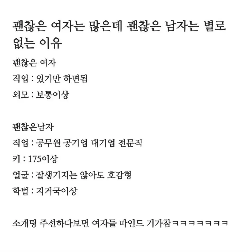 괜찮은 여자는 많은데 괜찮은 남자는 별로 없는 이유