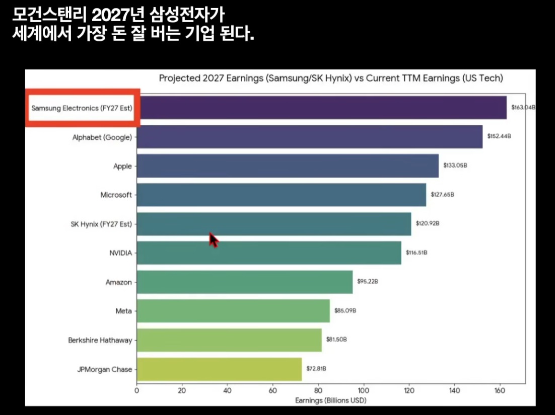 모건스탠리 2027년 삼성전자가 세계에서 가장 돈 잘버는 기업이 된다 작성자 정보 최고관리자 작성일 02.03 06:06 컨텐츠 정보 5 조회 0 댓글 0 추천 0 비추천 목록 1위 삼성 5위 하이닉스 https://youtu.be/jp3p_57FOIY?si=aY6upH9qEyFmFZxi 0 추천 추천 비추천 0 비추천 댓글 로그인한 회원만 댓글 등록이 가능합니다. 이전 다음 목록