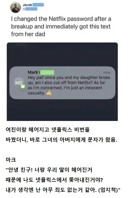 여친이랑 헤어지고 넷플릭스 비번 바꿨더니 바로 문자 옴