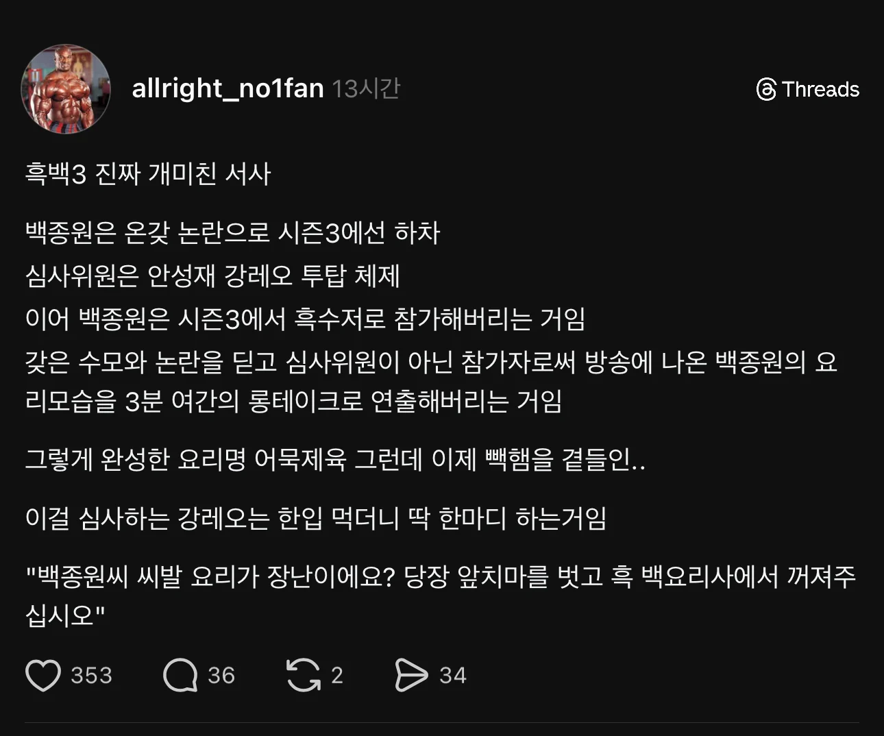 흑백요리사3 미친 서사 작성자 정보 최고관리자 작성일 2025.12.21 12:12 컨텐츠 정보 14 조회 0 댓글 0 추천 0 비추천 목록 0 추천 추천 비추천 0 비추천 댓글 로그인한 회원만 댓글 등록이 가능합니다. 이전 다음 목록