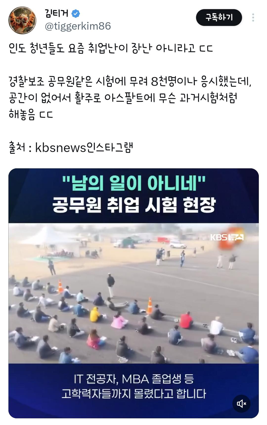인도도 취업난이 장난이 아니라고 함 작성자 정보 최고관리자 작성일 02.08 18:59 컨텐츠 정보 3 조회 0 댓글 0 추천 0 비추천 목록 0 추천 추천 비추천 0 비추천 댓글 로그인한 회원만 댓글 등록이 가능합니다. 이전 다음 목록