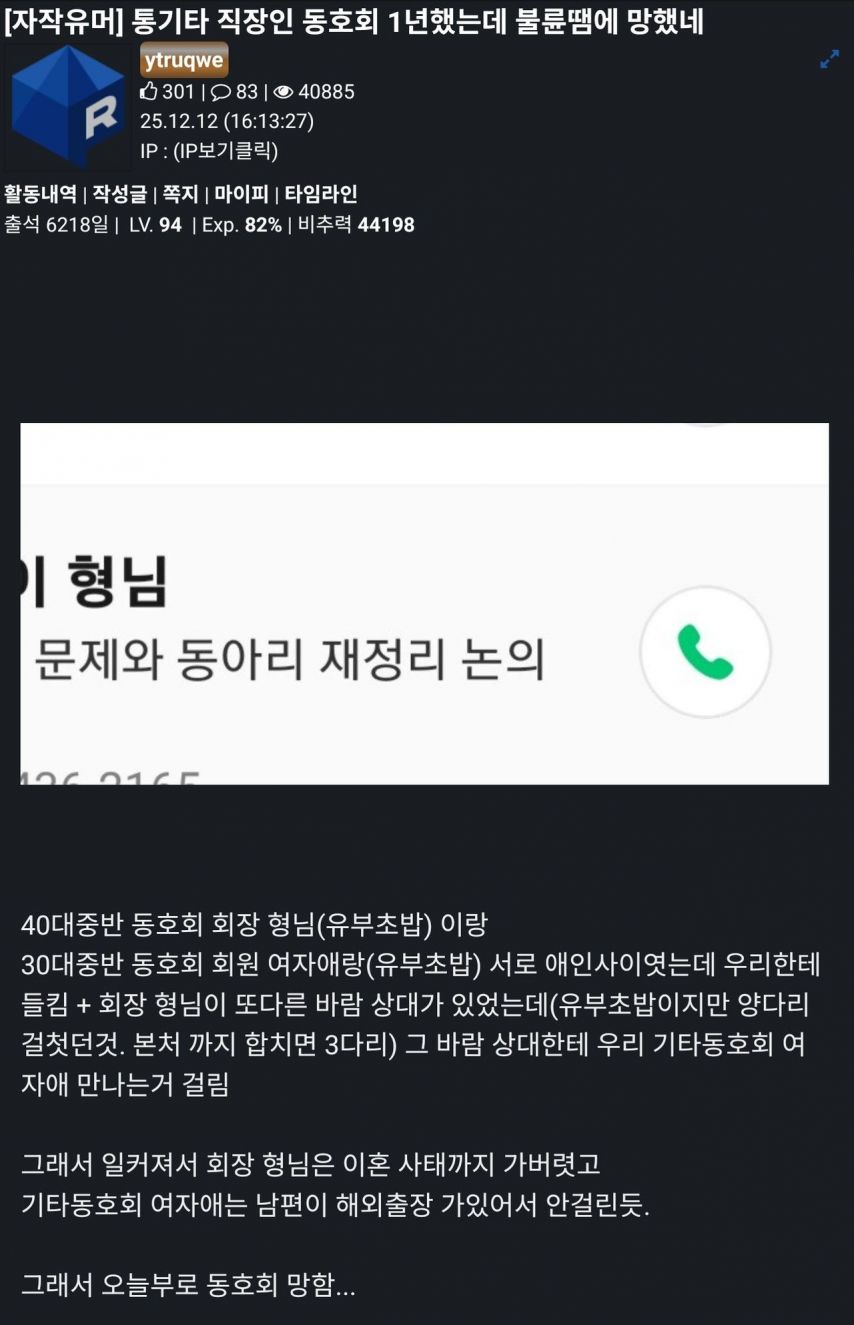 통기타 직장인 동호회 1년 했는데 불륜땜에 망했네