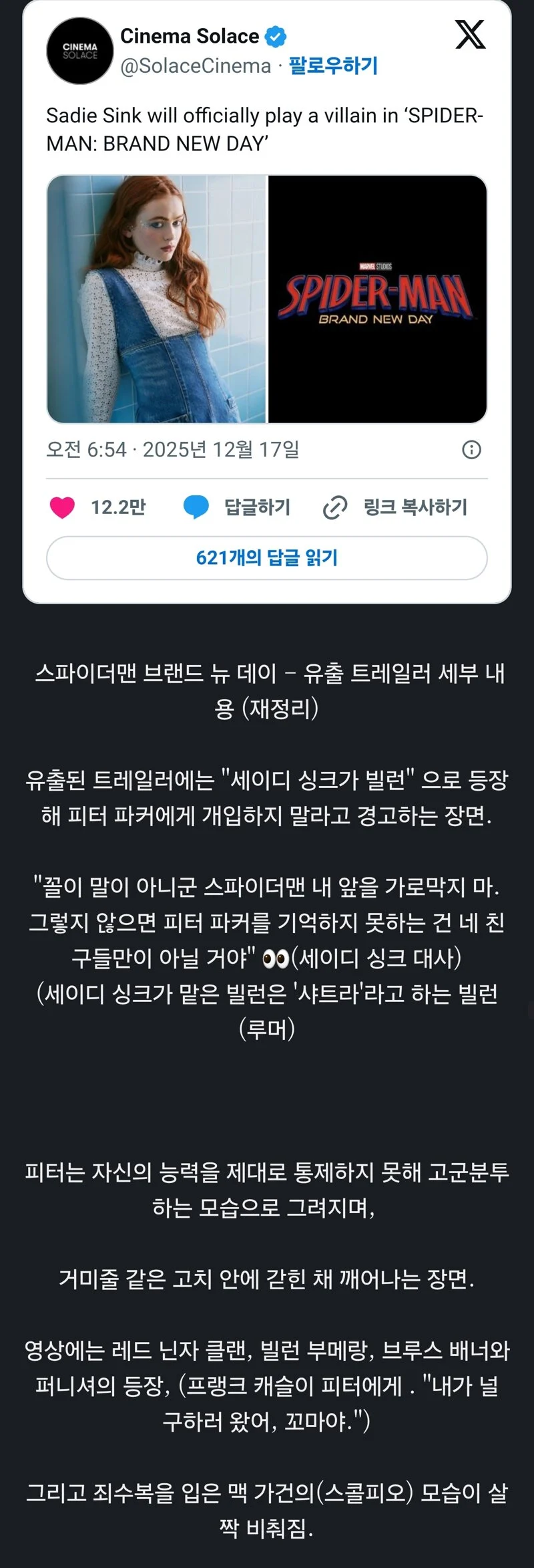 스파이더맨4 트레일러 유출 내용 작성자 정보 최고관리자 작성일 2025.12.18 13:09 컨텐츠 정보 13 조회 0 댓글 0 추천 0 비추천 목록 0 추천 추천 비추천 0 비추천 댓글 로그인한 회원만 댓글 등록이 가능합니다. 이전 다음 목록