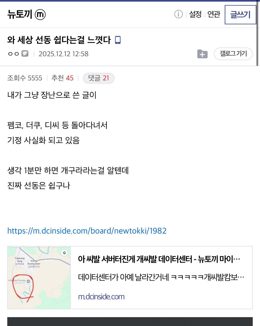 태국 폭격으로 뉴토끼 터졌다는 글의 진실 작성자 정보 최고관리자 작성일 2025.12.16 22:53 컨텐츠 정보 11 조회 0 댓글 0 추천 0 비추천 목록 태국 폭격으로 서버 터졌다는 건 구라 0 추천 추천 비추천 0 비추천 댓글 로그인한 회원만 댓글 등록이 가능합니다. 이전 다음 목록