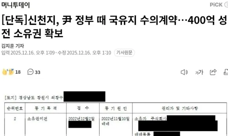 단독) 신천지, 尹때 국유지 수의계약 '400억 성전' 작성자 정보 최고관리자 작성일 2025.12.16 20:39 컨텐츠 정보 13 조회 0 댓글 0 추천 0 비추천 목록 계엄옹호에 신천지에 통일교에...이래도 정당해산 안시키면... .......... 와 진짜.... 너무하네 0 추천 추천 비추천 0 비추천 댓글 로그인한 회원만 댓글 등록이 가능합니다. 이전 다음 목록