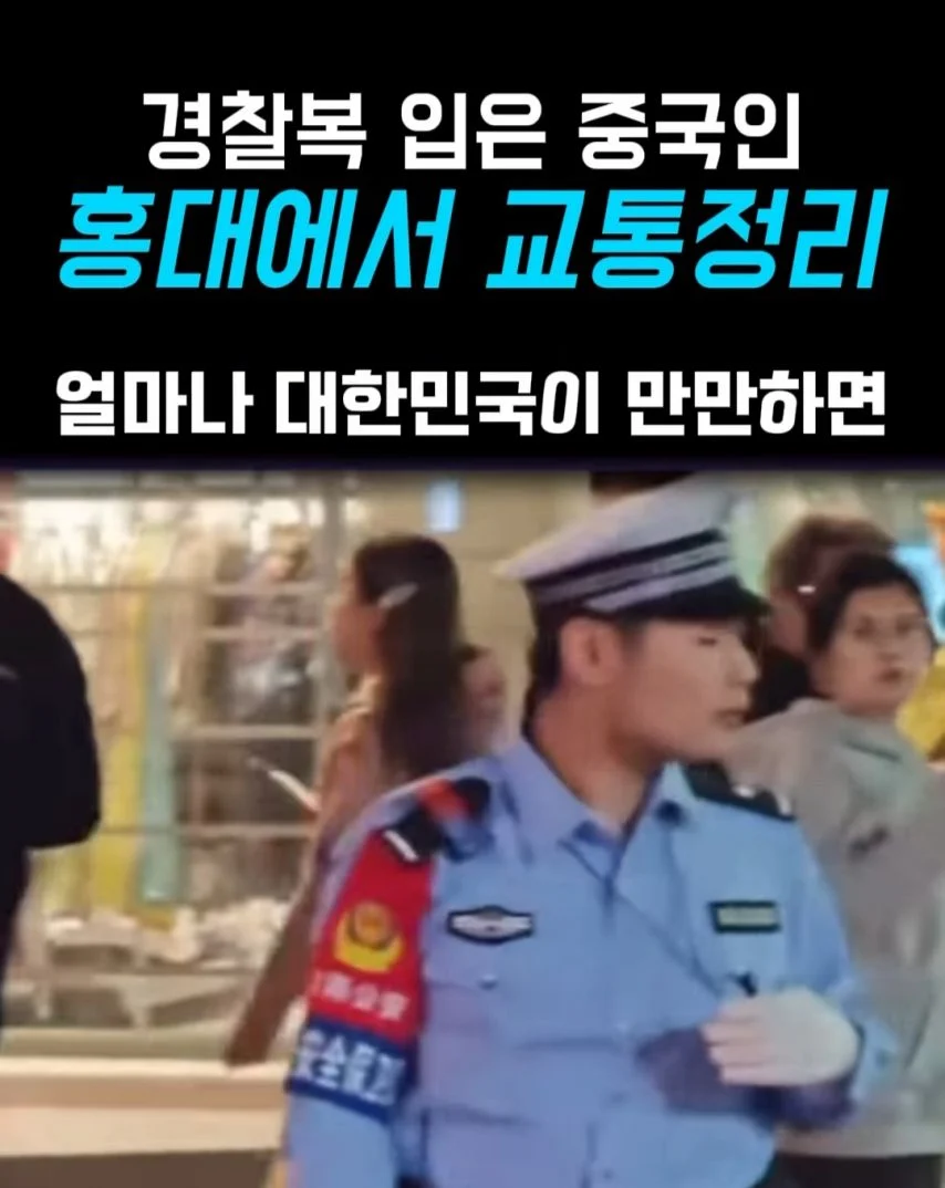 홍대에서 경찰 코스프레하고 교통정리 하는 중국인