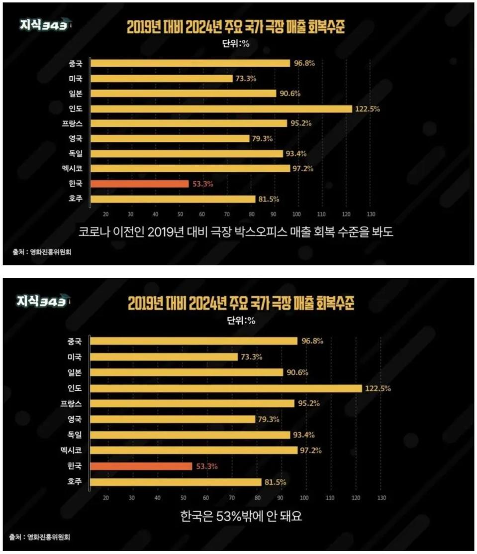 코로나 이후, 주요 국가 극장 매출 작성자 정보 최고관리자 작성일 2025.12.16 16:39 컨텐츠 정보 17 조회 0 댓글 0 추천 0 비추천 목록 2024년 기준 코로나 이전 대비 53% 0 추천 추천 비추천 0 비추천 댓글 로그인한 회원만 댓글 등록이 가능합니다. 이전 다음 목록