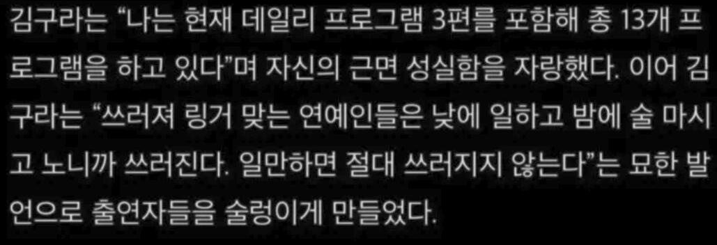 김구라가 말하는 연예인들이 쓰러저서 링거 맞는 이유