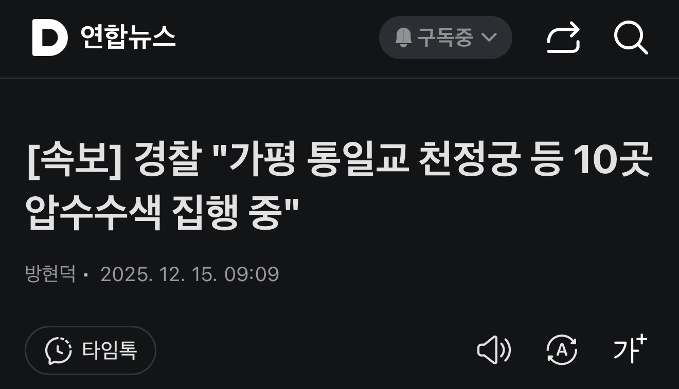 속보) 가평 통일교 압수수색 중 작성자 정보 최고관리자 작성일 2025.12.15 10:40 컨텐츠 정보 13 조회 0 댓글 0 추천 0 비추천 목록 https://v.daum.net/v/20251215090953076 통일교 신천지 종교 다 털어 버리자!!! 0 추천 추천 비추천 0 비추천 댓글 로그인한 회원만 댓글 등록이 가능합니다. 이전 다음 목록