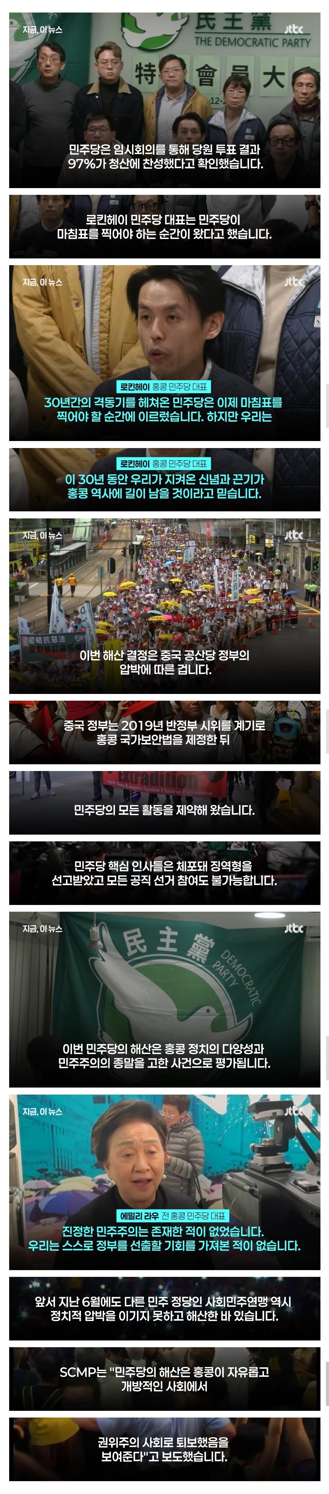 홍콩 민주당 정당해산 결정... 중국 공산당 압박에 민주주의 종말