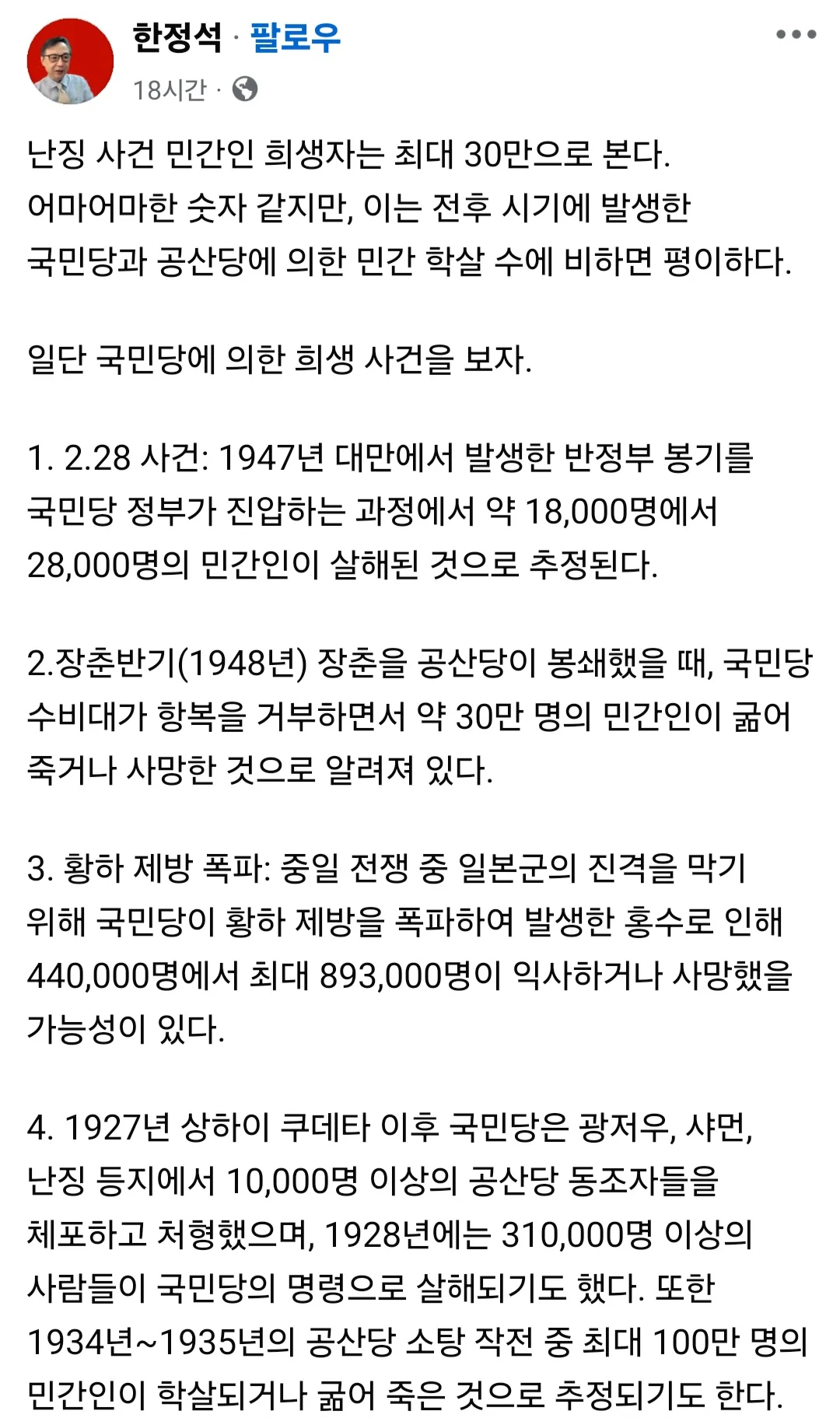 난징대학살보다 더했던 중국 국민당과 공산당 작성자 정보 최고관리자 작성일 2025.12.14 15:35 컨텐츠 정보 15 조회 0 댓글 0 추천 0 비추천 목록 0 추천 추천 비추천 0 비추천 댓글 로그인한 회원만 댓글 등록이 가능합니다. 이전 다음 목록