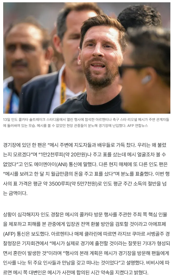 메시는 그냥 부른 대로 가서 인사해 줬는데 주최측이 운영 개판 치고 오해 만들어서 이 사단 난 거임.