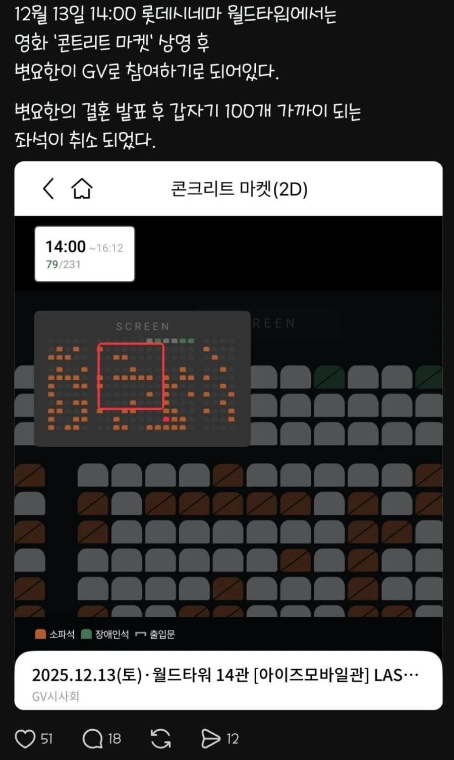 연애/결혼 발표하는 연예인의 숙명 작성자 정보 최고관리자 작성일 2025.12.13 21:40 컨텐츠 정보 16 조회 0 댓글 0 추천 0 비추천 목록 0 추천 추천 비추천 0 비추천 댓글 로그인한 회원만 댓글 등록이 가능합니다. 이전 다음 목록
