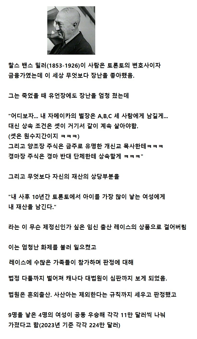 백만장자의 유언장이 만든 대 임신시대 작성자 정보 최고관리자 작성일 2025.12.12 19:48 컨텐츠 정보 17 조회 0 댓글 0 추천 0 비추천 목록 이 유언장은 본질적으로 드물고 변덕스러운 것입니다. 왜냐하면 저는 부양가족이나 가까운 친척이 없고, 사망 시 재산을 남겨야 할 의무도 없으며, 제가 남기는 것은 평생 동안 필요 이상으로 재산을 모으고 보유한 어리석음의 증거입니다. -찰스 밀러의 유언- 224만 달러 33억 960만 원 0 추천 추천 비추천 0 비추천 댓글 로그인한 회원만 댓글 등록이 가능합니다. 이전 다음 목록