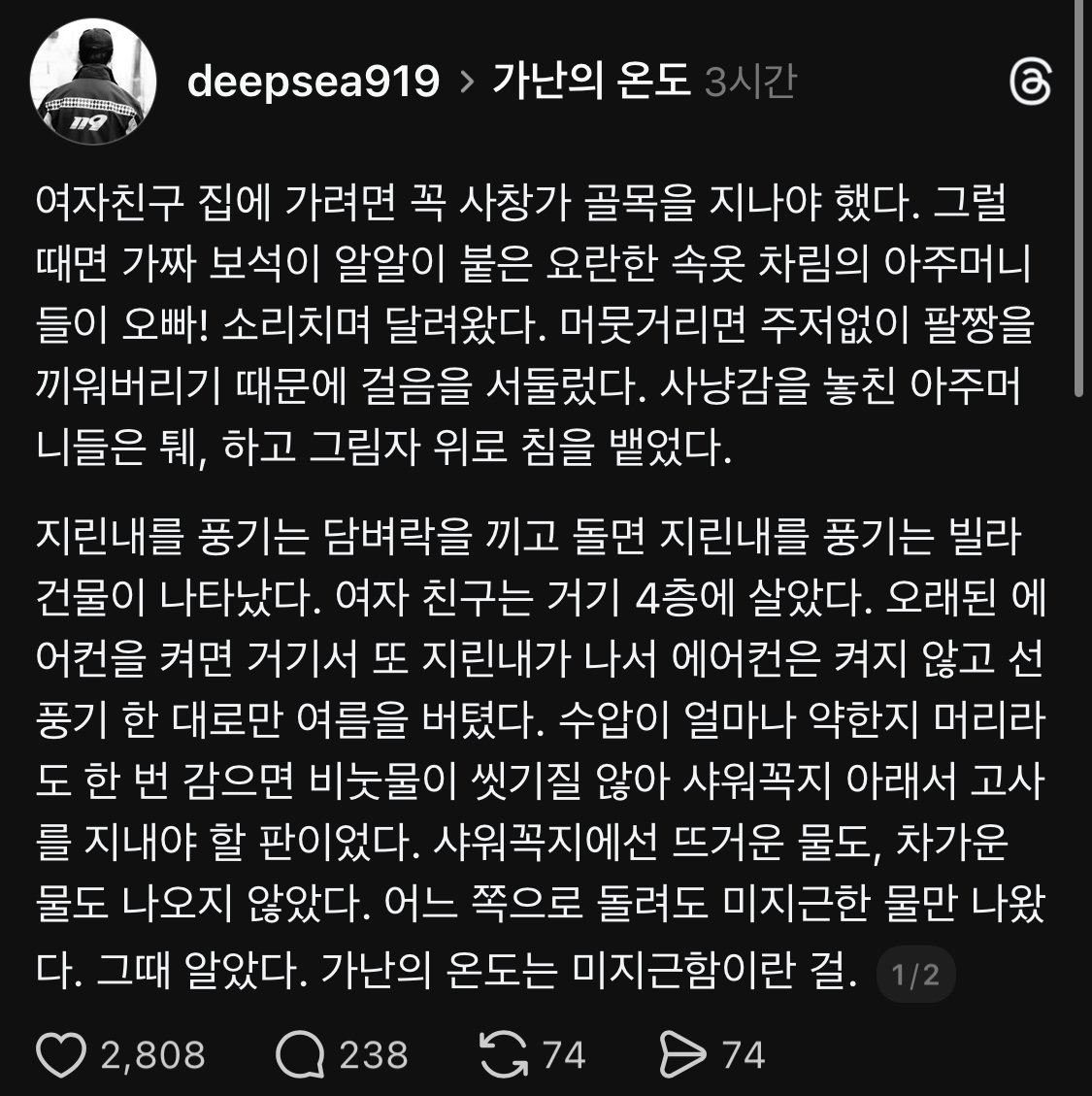 가난의 온도 작성자 정보 최고관리자 작성일 01.02 19:13 컨텐츠 정보 2 조회 0 댓글 0 추천 0 비추천 목록 0 추천 추천 비추천 0 비추천 댓글 로그인한 회원만 댓글 등록이 가능합니다. 이전 다음 목록