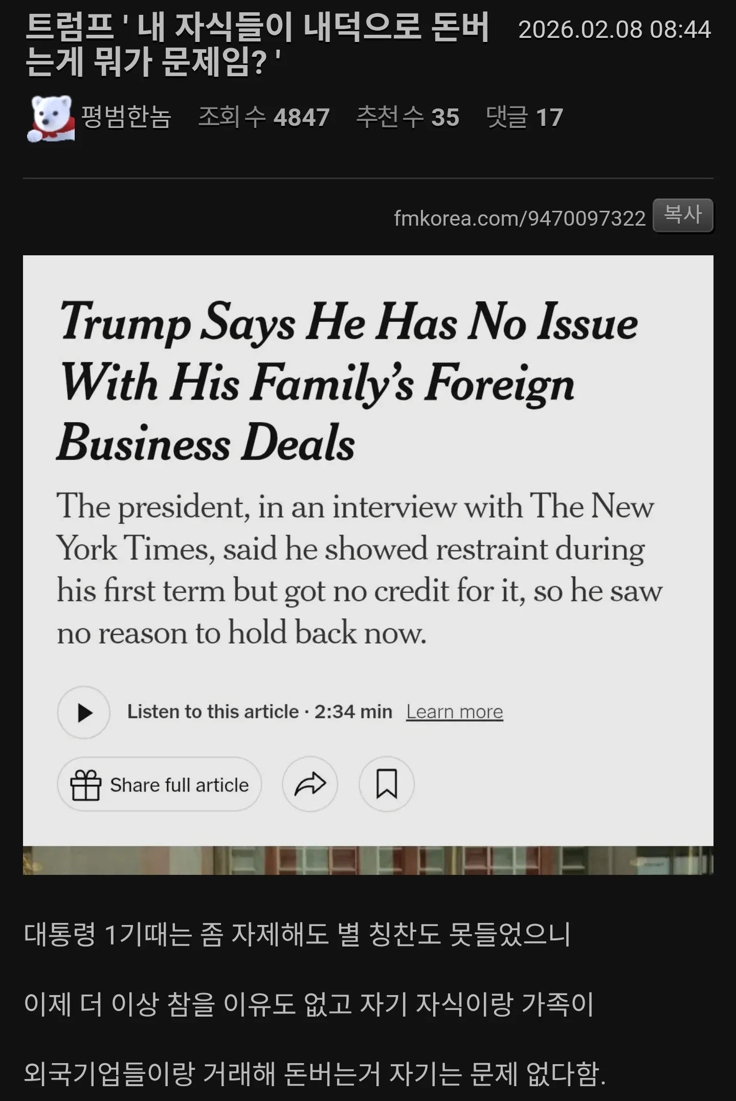 내자식들이 내덕으로 돈버는게 뭐가 문제냐 작성자 정보 최고관리자 작성일 02.08 11:27 컨텐츠 정보 3 조회 0 댓글 0 추천 0 비추천 목록 0 추천 추천 비추천 0 비추천 댓글 로그인한 회원만 댓글 등록이 가능합니다. 이전 다음 목록